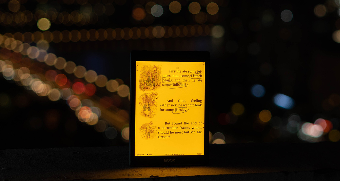 Lần đầu tiên xuất hiện trên màn hình E Ink Color – đèn nền vàng giúp thiết bị trở nên thân thiện với mắt, thời gian làm việc hiệu quả, cũng như đọc sách ban đêm tốt hơn bao giờ hết.
