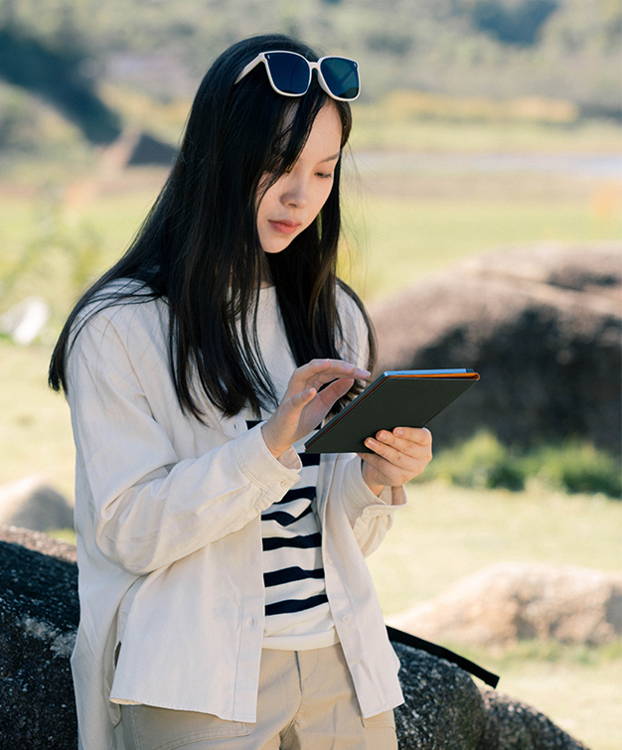 Mang theo Leaf của bạn ở bất cứ đâu bạn đi ra ngoài. Nó có trọng lượng nhẹ chỉ 170g và mỏng 5,95mm. Cho dù bạn đang trên đường, trong trại hay trên đồi, chỉ cần lấy nó, bật nó lên và tận hưởng những câu chuyện tuyệt vời với pin 2000mAh bền bỉ.